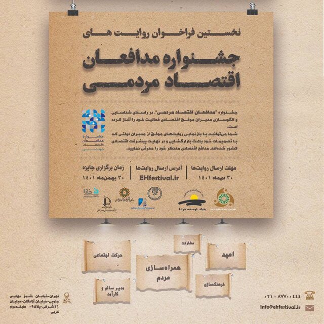 جشنواره مدافعان اقتصاد مردمی در فراخوانی اعلام کرده است، آماده دریافت روایتها برای داوری در دوره اول این جشنواره است.