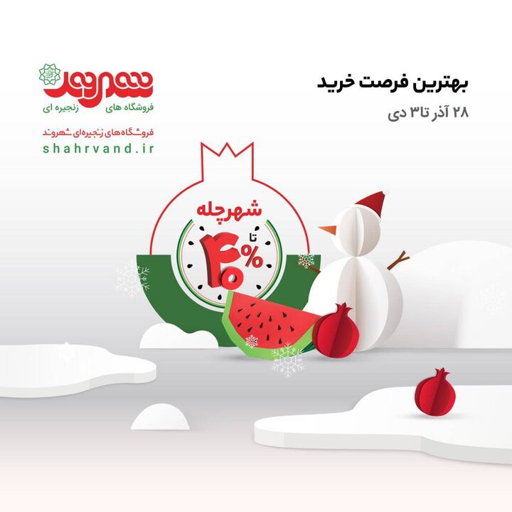 شهروند در شهرچله، تخفیفات ویژهای تا سقف ۴۰ درصد را برای مشتریان خود در نظر گرفته است. به گفته قربانیان، این تخفیفات در راستای حمایت از قدرت خرید مردم و کمک به خانوادهها در تامین مایحتاج شب یلدا ارائه میشود.