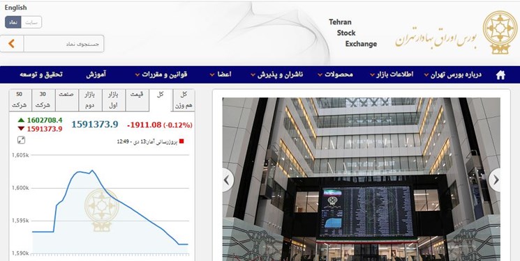 کاهش ۱۹۱۱ واحدی شاخص بورس تهران